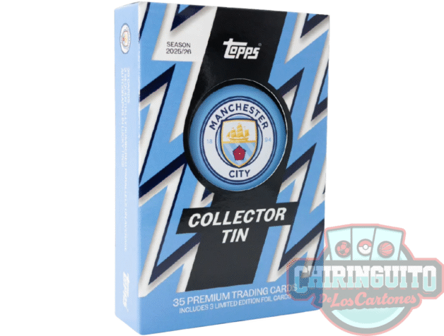 La 2025-26 Topps Manchester City – Collector Tin incluye: