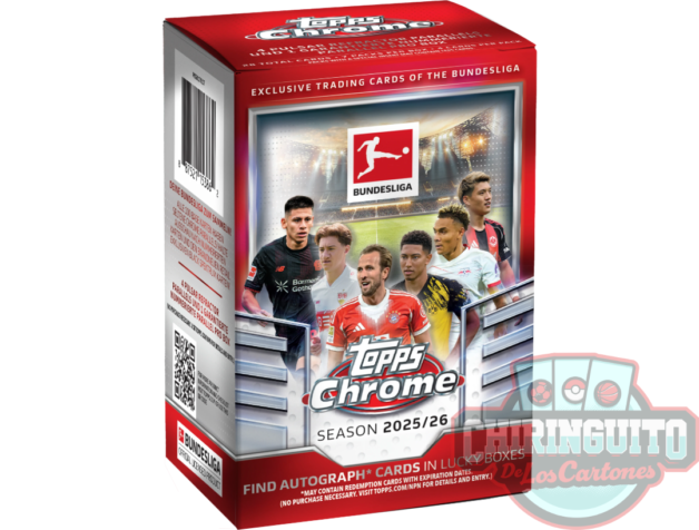 Topps Bundesliga Chrome 25/26 Value Box con 1 paralela numerada, 1 Black Spektrum, 4 Pulsar Refractor y 6 inserts.