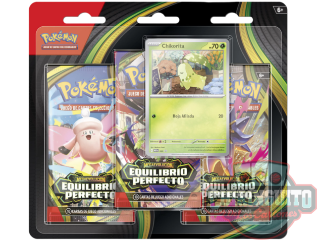 El Blister 3 Pack de Equilibrio Perfecto es una forma ideal de descubrir esta colección centrada en las Mega Evoluciones. Un formato compacto que combina sobres de refuerzo con carta promocional, pensado tanto para jugadores como para coleccionistas.