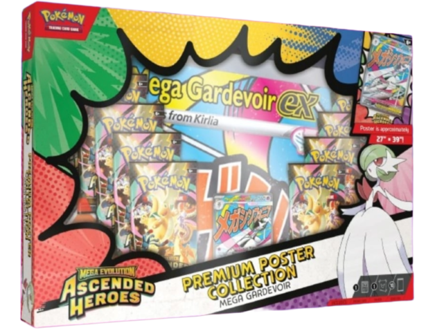 Cada Pokémon JCC: Mega Evolution – Ascended Heroes Premium Poster Collection – Mega Lucario o Mega Gardevoir incluye: