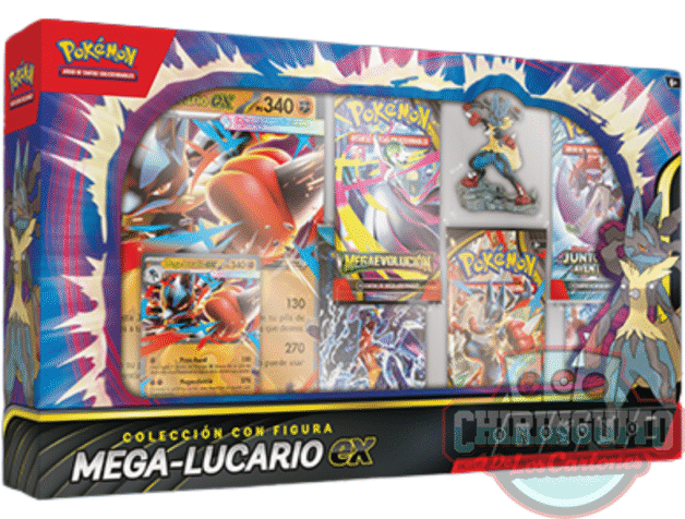 Perfecta tanto para jugadores como para coleccionistas, esta edición especial combina el poder de Mega-Lucario con un diseño espectacular que hará destacar tu colección.