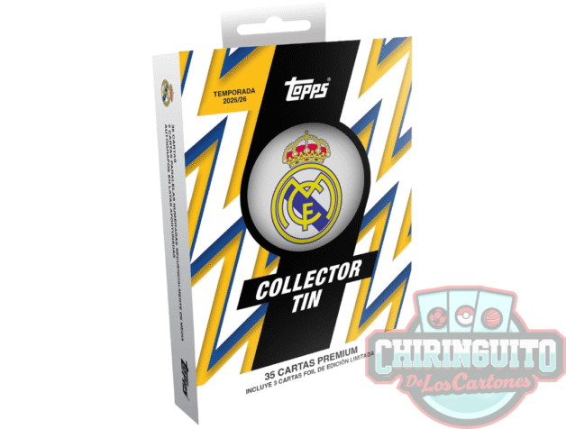 Celebra la grandeza del fútbol con la Topps Real Madrid Collector Tin 25/26, una colección premium dedicada al club más laureado del mundo.